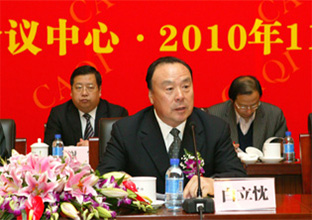 2010年11月17日,全國政協副主席白立忱(右四)出席中國質量檢驗協會全國會員代表大會暨第三屆理事會第一次會議,并出任中國質量檢驗協會名譽理事長;時任國家質檢總局副局長劉平均(右三)、時任國家質檢總局總工程師張綱(右五)等出席。
